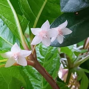 ①ヤブコウジ(十両)のお花 葉っぱをめくったら、 薄いピンクがかった白く小さなお花 うつむき加減にひっそりと咲いてました ②青々した葉っぱは、モリモリ💚 花言葉 明日の幸福 お正月頃、赤い実をつける縁起木 古くは万葉集で山橘(ヤマタチバナ)の名前で親しまれていたそう