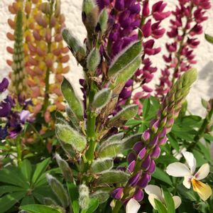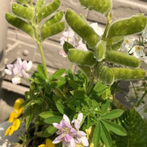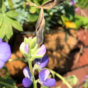 ルピナス次女 サイドの蕾も咲き始めましたよ❣️ で見て見て種が出来てるよ🥳 豆科なので鞘だね😃