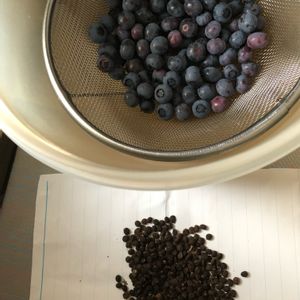 ブルーベリー収穫、第三弾! と、ルピナスの種。 似たような画像…。 さあ、どっちがブルーベリーでしょう?? なんてね。