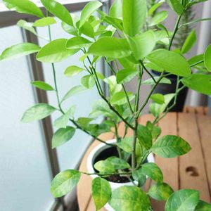 薄黄色いのは結実から1年半以上収穫せずに成らせているもの。なんでシワシワにならないのか不思議です笑。この木は育てて10年経ちました。今年春に花ひろばさんのみかんの土を使って12号に鉢増し。これ以上大きくなると管理が大変なので、来年はコンパクトに剪定予定。トゲも無く毎年収穫可能で、しかも四季咲きの優秀な柑橘。アゲハの幼虫に葉っぱを食べられても余裕で葉芽が沢山出てきます。