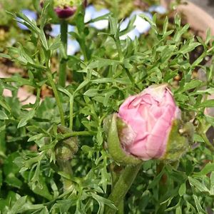 ラナンキュラス 🌼✨ つぼみ 前回 upしたのとは違う形の蕾になります 左奥に、前回と同じタイプの雌しべが覗いた感じの蕾が見えてます👀 沢山の蕾が出てきてるのですが、 何か蕾の形が 2タイプ ある……🤔? 何か違うのかしら❔ 初めて植えたお花は、 咲いてみるまで、あらゆる事がハラハラ ヒヤヒヤ💦です😅 早く咲いて~❣️✨