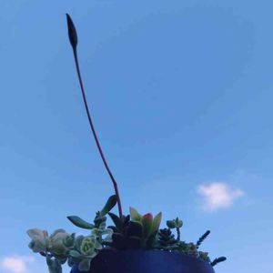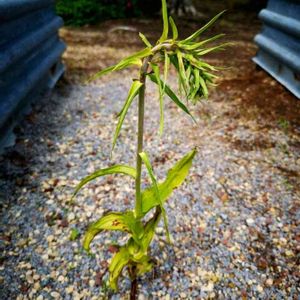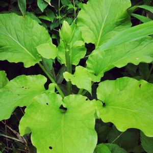 通路に根を張り、ここまで成長しました 毎年、出現するのですが、 咲きそうな頃に いつも天候悪化が原因なのか まだ花を見れていません┅(泣) 分かる方、教えて下さい🤗