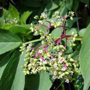 「ニワトコ(接骨木)」 ニワトコと言えばすぐにハリーポッターの最強の杖、ニワトコの杖を思い出す。 ニワトコの赤い実は鳥が食べ、西洋ニワトコの黒い実は食べられる。 驚いたことに、 この西洋ニワトコは別名エルダーフラワーと言う。 えっ、 エルダー フラワー😋☕️🥛 ハーブ ティーで飲んでた💕 別名:セッコクボク 🌺言葉:思いやり 2020.4.14 j