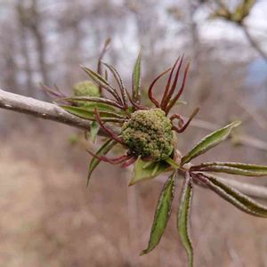 ニワトコ。 新芽を山菜として利用出来ますが、 食べ過ぎるとお腹を壊すらしいので要注意です。😅😋