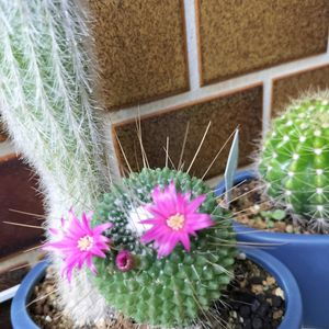 サボちゃん達の花の饗宴🤍🤍💗💗 ギムノカリキウム ボタン玉 兜丸 いろいろ咲き誇っている~ 今年はほんとぅに良く咲いています🤍🤍 私の手入れが良いのかな🤔🤔 そんなこと無いない👋
