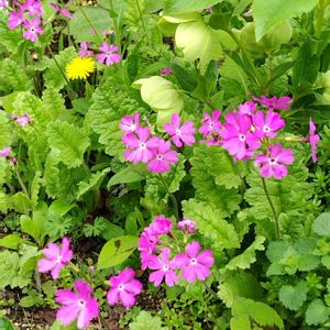 今晩は 日本サクラソウ今満開ですよ 地植えと鉢植えです 濃いピンクと薄いピンクどちらも可愛いですね(*>∀<ฅ).。.:*♡(><)👍🏻⭐️