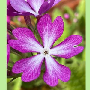 先ほど投稿したニホンサクラソウです❇️🌸💮❇️ ①白とんぼ❇️💮❇️ 先日お迎えしたばかりですがもう終わりかけてますね🤗 ②北斗星💮 このコも新人です❇️💮❇️ ③花裏が濃いピンク色🌸で表 が薄いピンク色💮のかわいいお花です😄 名前は不明です😂 一緒に写っているのは咲き始めたばかりの白いガーベラの お花です😊 ④真っ白な吹雪笠❇️🤍❇️ ⑤花びらのかたちや大きさがちょっとずつ違うショッキングピンクのお花さん達❇️💗💗❇️