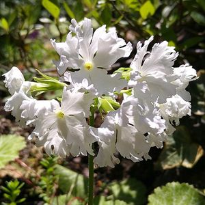 🏷山野草🏷ビオラ・パンジー祭り♪ 🏷一般ジーの会♪🏷チーム♡シロ 🏷お散歩ちゃん広報委員会 おはよう御座います😃 この八重の花は日本桜草に見えないでしょう❓🤔 蕾がうっすらピンクの可愛い白です🤍🪴 ①〜③ 日本桜草🪴🤍🌿No.13 ④⑤ パンジー・ポッピング💛 れんかちゃんに纏わせました💞 今日も宜しくお願いします🤗