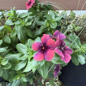 ニチニチソウ タトゥーの2色植えハンギング、最近特徴的な色合いで咲いています😍 夏の間も途切れずに咲いていたものの、あまり綺麗とは言えず一回しか投稿してませんでした。 だいぶ秋も深まりニチニチソウも終わりになってきたので、2025年にはこのニチニチソウがいたとうことがわかるように、ここで一度記念投稿しておきます😅