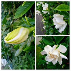 近所の団地の生け垣に八重のクチナシの花が咲いてきました☺️とってもいい香り〜💓漂ってました。