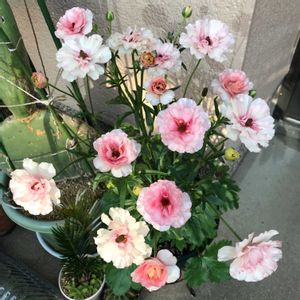 3年目のラナンキュラス ラックス 夏越し11種類目の アリアドネ咲きました 今年1月に新入りした ジュピターと共に 12種類育てています 今はテラスいっぱいになり 綺麗に咲いています!🥀🥀🥀