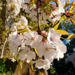 家の枝下桜、葉っぱと同時に咲きます🌱🌸