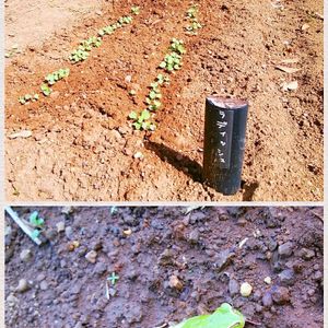 こんにちは(*´∀`)✨✨ ラディッシュの前をならえ、直まきするといつもこんな感じです😅💦性格でちゃいますね~笑 今日は嬉しい訪問者🐸💛 近寄られて警戒中⭐ ずっと雨降らないから暑いね💧 よろしくね♡♡