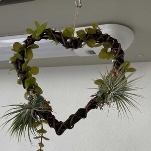 今日のお花 エアプランツ(チランジア)🌱 去年の7月にDAISOで買った私の寝癖頭みたいな『フクシー』さん…丸いガラスの中に入ってて水に浸かり過ぎたのか??根元がグズグズで😨化石状態💦 もう1つ一緒に買った『ブラキカウロス』は根?が出てる😲 んで1人じゃ寂しいだろうと同じ位の大きさの子を2つ追加✨ こちらは園芸店で買ったけど300円しなかったのでDAISOよりもお安く買えた✨ 今回はかごに入れてポトスの支柱にぶら下げてみたよ✨