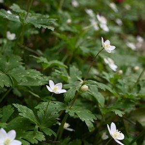 高尾山はニリンソウが花盛りでした✨💕🎶 キンポウゲ科 イチリンソウ属 スプリングエフェメラル 花期は3 - 5月ごろで、総苞葉の中心からふつう2本の花茎を伸ばして、白い萼片を持つ直径約2 cmの花を2輪つける。 2個または3個の花をつけるといっても、それらは同時に咲くのではなく、1週間ほどの時間差をおいて開花します。 第1花(1番めに咲いた花)が見頃の状態のとき、第2花・第3花はまだ咲き始めや、ツボミの状態であることも少なくありません。 しかも第2花〜第3花の蕾は、まだ花柄すら伸ばしてなく、第1花の花柄の根元に慎ましやかについている状態も多いのです。 ①picは2輪目の蕾が現れていますね💕🎶 たくさん群生していたので、ピンクニリンソウやミドリニリンソウを探したのですが、私には見つけられませんでした😰 pic③④ 萼片の裏がピンク色の妖精さんはいました🩷🧚♀️🩷🎶 pic⑤ 多萼片のお花もたくさんありました✨🎶 ニリンソウ キンポウゲ科 イチリンソウ属 スプリングエフェメラル