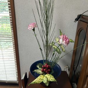 おはよう栗🌰 1ヶ月ほど前に生けた栗の立花です。 この栗はいけばな用の栗なので、剥いても何か入ってるような入ってないような… その前にトゲが痛すぎてあまり触る気になりませんが🤣 見た目がとてもかわいいので、ついつい沢山の実を付けたまま生けますが、先生からはもっと間引くように言われてしまうのでした🌰🌰🌰