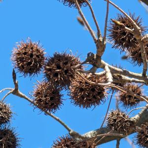 タイワンフウ🌳 今年も実がたくさんついてました。 春を感じる今頃、カリカリになった丸い実が沢山落ちてきます。 公園にある落葉樹の中で一番紅葉するのが遅くて、新芽が出るのも遅い、のんびり屋さんの木です🌳 タイワンフウの実は、モミジバフウの実の大きさと同じくらいです。 公園の砂場で作るケーキのトッピングに良く登場します✨秋はモミジバフウの実、春はタイワンフウの実、小さな子ども達が喜ぶように植えてあるのでしょうか?