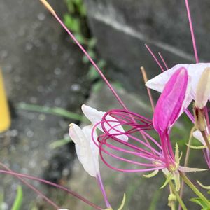 おはようございます✳️ 昨日会ったお花 クレオメ 少し涼しかったので 遠くまで散歩🚶 道端で咲いてます💕 シベが面白い 8 8 ハハ😄の日 雌しべが グ〜ンと長い ④斑入りカンナ 涼しげです♪ ⑤畑の里芋の葉 クルリンと巻いてます➰ 🏷️毎月8日は葉っぱの日 参加いたします🌿