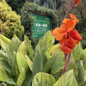 今日のお花カンナ❇️❤️🧡❇️ 名古屋市鶴舞公園で咲いていた斑入りのカンナ❇️🧡🧡❇️ 過去の写真です🤗
