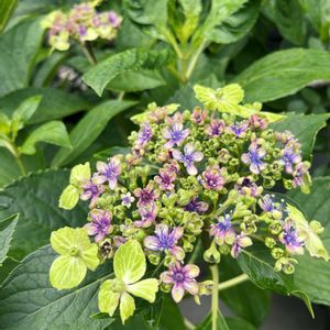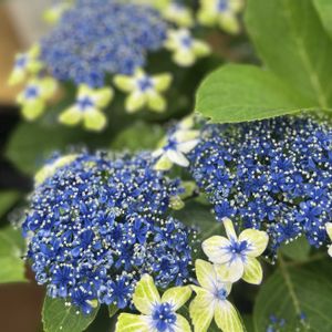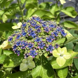 【紫陽花】 『大島緑花』 (おおしまりょっか) 昨年 『おぎはら植物園 上田店』 でお迎えした紫陽花✨ 今年も咲いてくれました❣️ 両性花が青か赤か微妙ですが…🤭 初めて知ったのは 東京の『白山神社』 大株に驚きました🤩 (その様子は[みどりのまとめ]1番下にあります☺️) いつか出逢いたいと思っていましたが昨年叶いました❣️