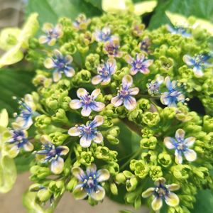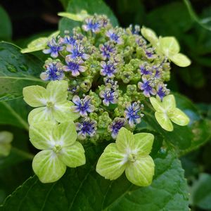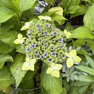 緑の装飾花と中心の青が美しい 唯一無二の品種ですね☻