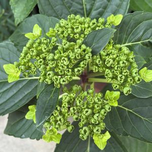 いいね👍をくださるみなさま、ありがとうございます 梅雨ですね☔️ どの紫陽花かわからなくなってしまってたのが、緑🟢の蕾あげてきて… もしやと待ってました💗 装飾花も出てきたので、間違いなく、『大島緑花』でした〜🙌🏻 枯らしたと思ってたので、超嬉しい☺️ たった一輪ですが、愛おしい これから先の変化を楽しみます