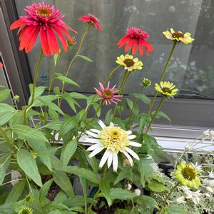 ①②エキナセア𓂃𓂂ꕤ*.゚ 八重は真ん中が盛り上がってきました! それにしても、オレンジだったエキナセアダブルスクープですが、赤になっているような😅 ③ルドベキア アーバンサファリ フォレストグリーン𓂃𓂂ꕤ*.゚ こちらも咲き始めました。 ④昨日もアップした紫陽花大島緑花 さらに中の青い花が開いて青革が濃くなりました。 ⑤コサージュも青が濃くなりました。 ∵∴ ୨୧ ∴∵∴ ୨୧ ∴∵∴ ୨୧ ∴∵∴ あまりに暑くて庭仕事できないから、今日はいつもより早起きして朝活ガーデニングしました! 早起き苦手だけど、爽やかだし、やっと昨年のクリクマを植えられた💦 西側のアジュガを整理して、株分けしておいた、ガイラルディアグレープセンセーションを地植えしました。地植えして増えすぎないか少し心配だけど、とりあえず植えちゃいました! 在宅勤務なので、昼休みにガーデニングしていたりしたけど、しばらく暑さでできないから、これからは朝活かな。 早起き頑張ろう‼️