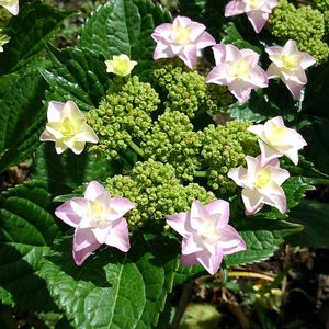 日曜の朝の撮影です。 他の紫陽花はまだ気配もありませんが、気の早い品種のようです。