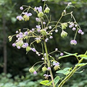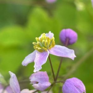 おはようございます。 今年はダメかと思っていた紫錦唐松(シキンカラマツ)が咲きました。少しですが😅 鉢に植えたまま4年目に突入したら、元気がなくて、サイズも小さくなりました。今年は空梅雨で、日当たりが良すぎたかも。日陰に移動したら、蕾が出てきました。 この子は、鉢植えの場合には2・3年で植え替えしないといけないかもしれません。もう少し涼しくなったら植え替えましょう。