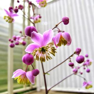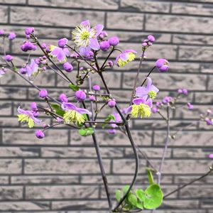紫錦唐松💜 (タリクトラム・ロケブルニアナム) 一昨日から兆しがあり、昨日はシベが上に見え、今日先ほど開花確認‼️ 枝を少しこちらに引っ張って片手でなんとか撮影‼️😂 高いところで、天に向かって咲いています(*^^*)✨✨✨✨ まだ1輪ですが、これからどんどん咲いてきてくれるとおもいます😌💜 この子を分けて頂いたのえるママのところでは、すでに沢山の可愛らしい黄色の蕊を見せて咲いているようです‼️ 有難うね🎵😆🎵💜🧡