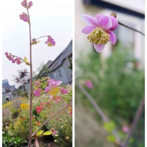 シキンカラマツ( ⸝⸝•ᴗ•⸝⸝ )੭⁾⁾ ↖️もう1ヶ月以上咲き続けてる鉢植え🪴 ↘️やっと咲き始めた地植えの子。 地植えの子は、鉢植え🪴の背丈の半分くらいしかありません🥲💦 普通、地植えの方が大きくなるだろうに… ウチの庭ったら、どんだけ栄養不足なの? でも、綺麗に咲いてくれてありがとう💕
