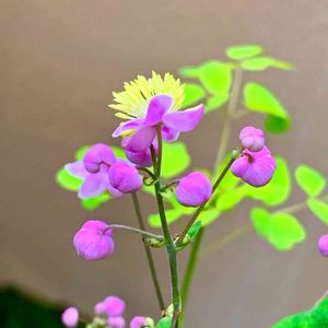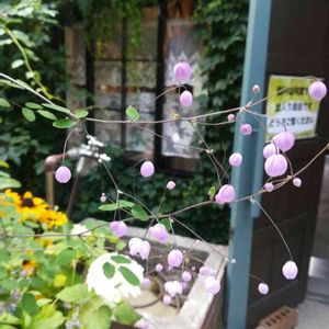 小さい風鈴がユラユラ 🎐🎐🎐🎐🎐 涼しげです 名前が思い出せません😓 お名前を教えて頂きました♬ 「紫錦唐松(シキンカラマツ)」 ありがとうございました❣️
