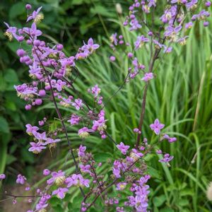 シキンカラマツ(紫金唐松) 初見の花です。 会いたかった花💜💚💜💛 紫色のは萼片、雄蕊の黄色が鮮やか 美しい💜💜💛💛 🏷青い花マニア 🏷ブルーのときめき❣️ 🏷ちっちゃいものクラブ 🏷癒しの薄紫 キンポウゲ科 カラマツソウ属 原産地: 日本 開花: 7〜8月 花言葉: 「華やか」 草丈: 0.5~1.5m 花径: 1㎝程