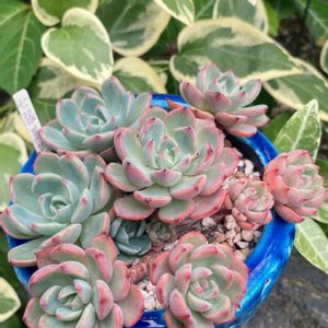 おはようございます☀ 本日もとても良いお天気☀ 暑いです☀️😖☀️ ベランダの温度計は既に30℃越え😳😩💦 プリドニスの群生から脇芽も覗いています🧐 縁のピンクが可愛い色しています🥰