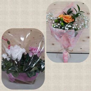 2件の受注品 お一人目は シクラメンのセットは 友人へのプレゼント🎁 お二人目は プチブーケは 友人のお子様へのプレゼント💐 時間がなくてパパッとラッピング