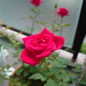 復活シリーズ。白いミニ薔薇。小さな白い薔薇が1つ、2つ咲いただろうか。夏に水やりを小さい鉢故に忘れ去られ枯れてしまった薔薇の木が復活しました。まだ蕾はついているか見えませんが花が咲くまで水やりを怠らないように努めます。花が咲いても寒い時は移動したりと可愛がります。