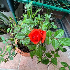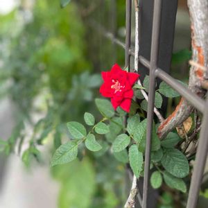 雨振りだしました ひっそりと赤いミニ薔薇🌹さんが咲いてます どうかこの台風🍃🌀☔最小限で通りすぎする事願います🙏