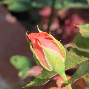 サーモンピンク🌹ちゃんに再び蕾ができました どの薔薇も葉っぱを穴あきに食べられ貧相になった中、希望の光✨✨嬉しいです 🏷金曜ローズショー 🏷金曜日の蕾たち 参加させて下さいね💓
