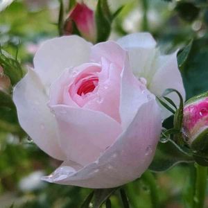おはようございます◡̈︎*♚︎‧*˚✩︎‧₊˚ ミニ薔薇🌹咲き出しました。 可愛いミニ薔薇さん🌹シュート(知ったかぶり😋)???も4本位あります。一丁前です。 挿し穂からの同じミニ薔薇🌹も花芽を沢山つけています。 強い薔薇🌹さん ワイヤープランツとローズゼラニウム。一つだけ花を発見❣️ 葉牡丹、水揚げ後のダイヤモンド💎がキラキラ綺麗です。