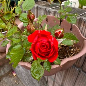 今年の薔薇がやっと咲き始めました😊 赤のミニ薔薇です