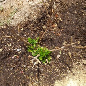アジサイ 2022春 雑草防止にウッドチップをひいてみるが、後に去年の枝の新芽が枯れたため、撤去💦 新枝だけになってしまう 今振り返ると、雪解けだからと水やりをしなかったからかも…