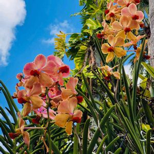 おはようございます(╹◡╹) 賑やかに咲いている可愛いらしい😍 蘭(バンダ、ウシャ)🌸🌸🌸 台風で、大雨、風が強い地域の皆様 十分にお気を付け下さいね。