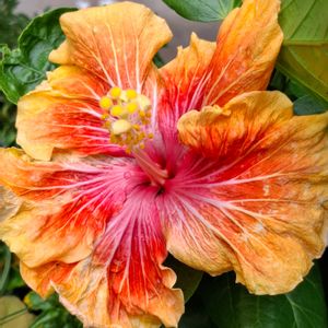 オレンジ色強めの花色で開花🌸🌿 しているのは 伊良湖岬のハイビスカス 🐝ハニーブラウン🍯🤎 初夏の頃は、もっとアンニュイで大人色の優しいブラウンで咲いていたのが… 7月の本格的な暑さを迎えると、しばらく花止まり…蕾が開かずポロポロ落ちていた😅 ので、久し振りの開花🌸🌿 初夏に咲く色合いの素晴らしさと… 美味しそうな名前に(๑´ڡ`๑)🤎🍯🐝 もちろん心奪われるのである😍