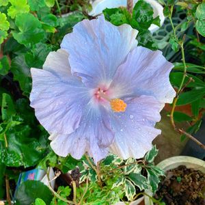 おはようございます 明け方にひと雨降ったようで地面が濡れていましたが、🌂その分、蒸しています。ハイビスカス🌺達も次々と花を咲かせてます ✤💛🤍復活のアイスレモンも一気に🍋🍋🍋💮😄 ✤🍀花友さんに頂い デニムブルーのケイトも順調🩶💙🌺👌 ✤フラミンゴ🦩が2日続けての爆咲き😲❣️ 6輪、5輪…と咲き 鉢植えの向きを整えるのに苦戦😂 もう萎れ、落ちた数で花数を知る💡😅ことになることも🤭