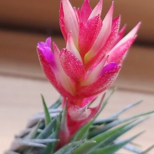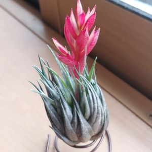 Tillandsia sprengeliana 例のスプレン、咲きました🌷 見ての通りショボい開花となってしまいましたが、ブラクトの形状から内陸型だと分かったので、次はしっかり栽培して絶対カッコ良く咲かせてやります🌿