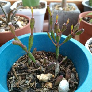 今 とっても気になってる子です‼️🤓 🐒猿恋葦...サルコイアシ🐒 名前の由来も気になるし... 茎の先に 赤い芽が付き 黄色の小さな花が🌼咲くみたい🌼❣️ リプサリス❓と思ったけど リプサリスはリプサリス属 こちらはハチオラ属だそう😊 親戚くらいかな?🧐