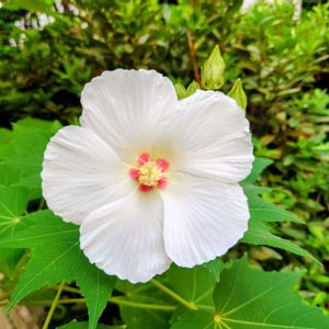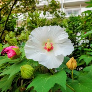 去年植えた西洋芙蓉が、 去年は咲かなかったが、今年開花してそれも沢山🥰 毎日咲いてて癒し🥰 朝は白で、夜は、ピンクに徐々に変わる色がまた神秘的🥰