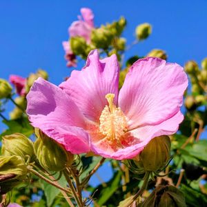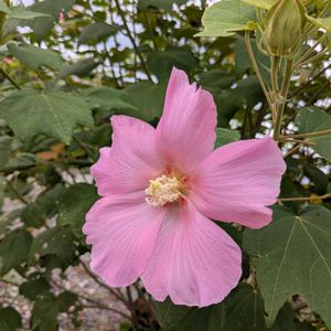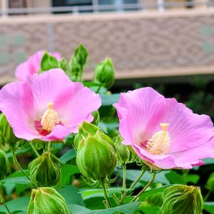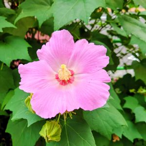 昨日の朝、通勤途中に見かけたピンク色のフヨウ。