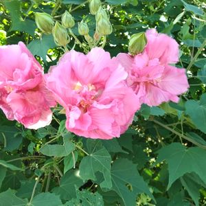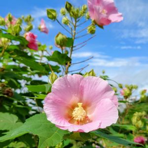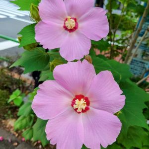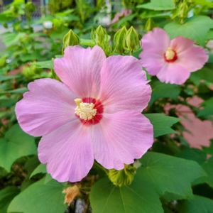 💕今日もアムと朝 花散歩💕No.3 (フヨウ 芙蓉) 鮮やかなピンクの花