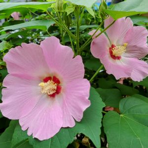 今週朝、通勤途中に見かけたピンク色の芙蓉。